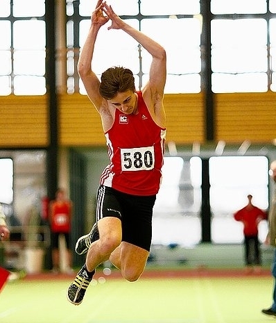Auf neues Terrain begab sich bei diesem Wettkampf Weitspringer Maximilian Maciejewski. Nachdem er sich sozusagen zum Warmmachen den Sieg über 60 Meter in 7,26 Sekunden geholt hatte, trat er zum ersten Mal in seiner Karriere beim Dreisprung an. Mit seinen Stärken Schnelligkeit und Sprungkraft war er hier auch bestens aufgehoben und so sprang er auf Anhieb eine Wahnsinnsweite von 13,69 Metern. Mit dieser Leistung gewann er natürlich nicht nur den Titel, sondern landete auch gleich auf Platz fünf der aktuellen deutschen Bestenliste.