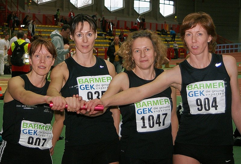 Ebenfalls Vierte wurde Anke Kerstein-Sutter. Das Ausdauer-Ass vom TSV Schloß Neuhaus erzielte im 3.000-Meter-Rennen der W45 die exzellente Zeit von 11:50,42 Minuten. Ihr Trainer Axel Czech war sehr zufrieden: „Anke hat eine tolle Leistung gezeigt. Für eine Langstrecklerin ist die Halle ja nicht ganz so wichtig. Wir konzentrieren uns jetzt auf die Sommersaison. Da peilt Anke über 5.000 Meter eine Zeit unter 20 Minuten an.“