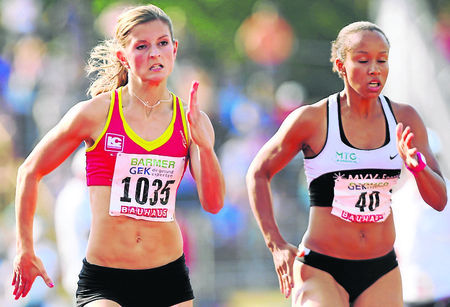 Inna Weit (links) sprintet an der Seite von Deborah Hufschmidt (MTG Mannheim). Foto: Pressefoto Baumann
