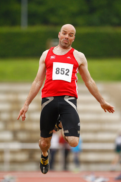 Ulrich Ratsch von LC Paderborn lag im Weitsprung der M45 satte 25 Zentimeter vor dem zweitplatzierten Reinhard Gruhn (Erkenschwick) (Foto: Thomas Finke)