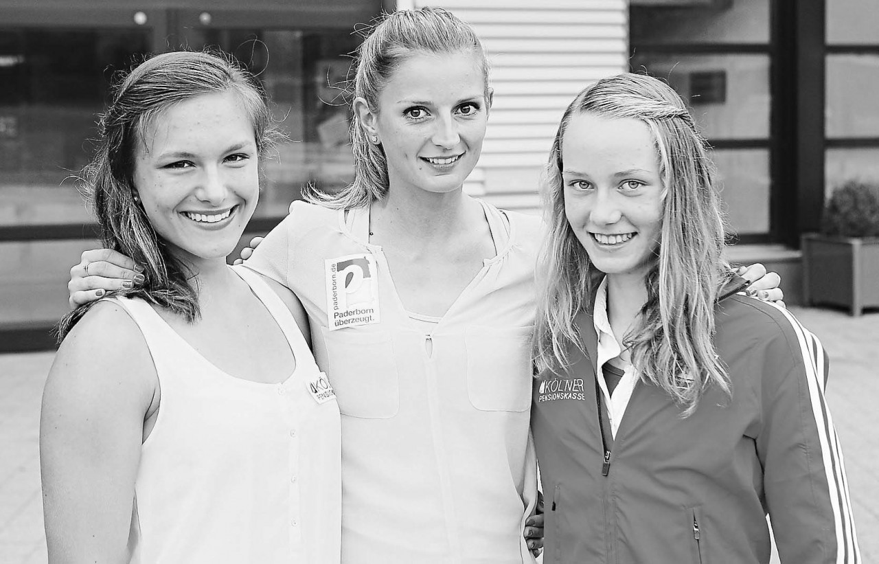Kurz bevor sich Chantal Butzek (links) und Mareen Kalis (rechts) auf den Weg zu den Deutschen Meisterschaften machten, ließen es sich der LC Paderborn und die Stadt nicht nehmen, den Nachwuchsassen zu ihrem Erfolg bei den U 18-Weltmeisterschafften in Donezk zu gratulieren. Butzek hatte über die 100 Meter Hürden den sechsten, Kalis über die 800 Meter den siebten Platz belegt. Norbert Fröhleke, 2. Vorsitzender des LC, hob hervor, dass dieses großartige Abschneiden einmalig in der Vereinsgeschichte sei. Bürgermeister Heinz Paus gratulierte ebenso wie Bernd Schäfers-Maiwald von der Initiative »Paderborn überzeugt«, der FLVW-Kreisvorsitzende Siggi Hornig und LC-Aushängeschild Inna Weit (Mitte), die im August bei der WM der großen in Moskau mit der deutschen 4×100-Meter-Staffel antritt. Anschließend konnte Fröhleke mit der Kölner Pensionskasse einen neuen Sponsor für die zwei Toptalente präsentieren. Ihre außergewöhnlichen Fähigkeiten wollen diese schon von heute an bei den Deutschen Jugendmeisterschaften in Rostock erneut unter Beweis stellen. Dort geht es für Kalis als Favoritin auf die 800 Meter, während Butzek über die Hürden Gold holen will, aber auch über 100 Meter flach und in der 4×100 startet.
