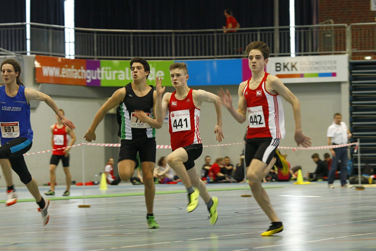 Einen Doppelerfolg gab es über 60 Meter bei der männlichen U18. Dort siegte Noel Thorwesten in starken 7,41 Sekunden vor seinem Vereinskameraden Vincent Rehse der die Ziellinie in 7,60 Sekunden überquerte. Ebenfalls siegreich war in dieser Altersklasse die 4×200 Meter-Staffel in der Besetzung Lorenz Gamm, Christian Brunn, Marvin Göllern und Noel Thorwesten. Sie gewannen in sehr guten 1:37 Minuten. Lorenz Gamm hatte zuvor schon den Stabhochsprung mit einer übersprungenen Höhe von 3,00 Metern gewonnen.