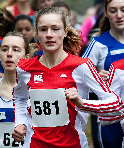 „Wir sind hundertprozentig zufrieden“, resümiert LC-Coach Michael Krusemark, dessen Athletin sich konsequent an die taktische Marschroute gehalten hatte. So mischte Tatjana Schulte von Beginn an vorne mit. Auf dem 4,36 Kilometer langen Kurs, auf dem es mitunter über Hügel und Strohballen sowie durch tiefen Sand ging, trotzte das LC-Talent den zahlreichen Rhythmuswechseln. Am Ende stand in 16:22 Minuten der besagte sechste Platz zu Buche. Der U18-Titel aber ging an Topfavoritin Alina Reh vom TSV Erbach. Die Fünfte der U20-Europameisterschaft lief bei frühlingshaften Temperaturen in 15:02 Minuten ein einsames Rennen.