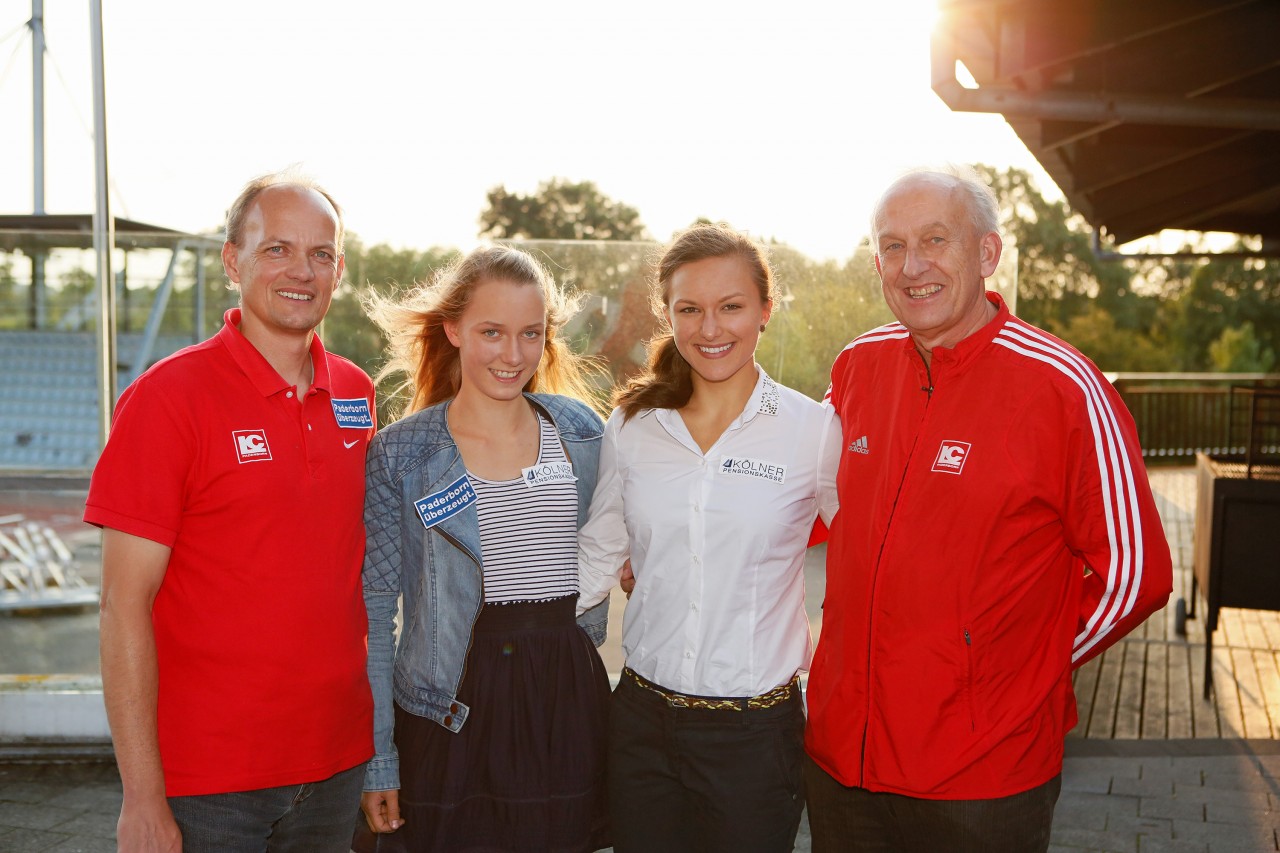 Trainer Michael Krusemark mit seinem Schützling Mareen Kalis und Chantal Butzek mit Trainer Michael Gaentzsch
