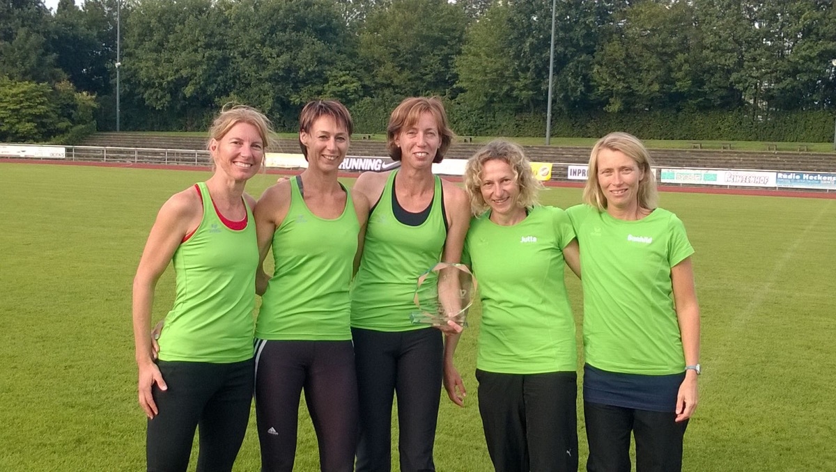 Die schon bei der Senioren-Weltmeisterschaft 2015 in Lyon erfolgreichen Damen setzten sich jetzt im Team-Finale die Krone auf. Als viertbeste Mannschaft angereist konnten Christina Bösch, Kerstin Drewes-Czech, Michaela Zwiener, Jutta Bergener und Gunhild Kalis ihre Punktzahl noch einmal erheblich steigern und siegten mit 6216 Punkten vor den Mannschaften aus Obernburg-Mittenberg (6004 Pkt) und Bayer 04 Leverkusen (5851 Pkt). Auch wenn so manche Dame aufgrund der personellen Knappheit nicht in ihrer Hauptdisziplin starten konnte, zeigten sie große Flexibilität, und glänzten mit einer geschlossenen Mannschaftsleistung. Herausragend dabei waren der 100-Meter-Sprint von Kerstin Drewes-Czech in 13,40 Sekunden und der Weitsprung von Christina Bösch mit 4,71 Metern. Aber auch die abschließende 4×100 Meter Staffel gewannen die Damen mit großem Vorsprung in 53,43 Sekunden. So konnten sie am Ende der Saison völlig überrascht und glücklich die Goldmedaille in Empfang nehmen.