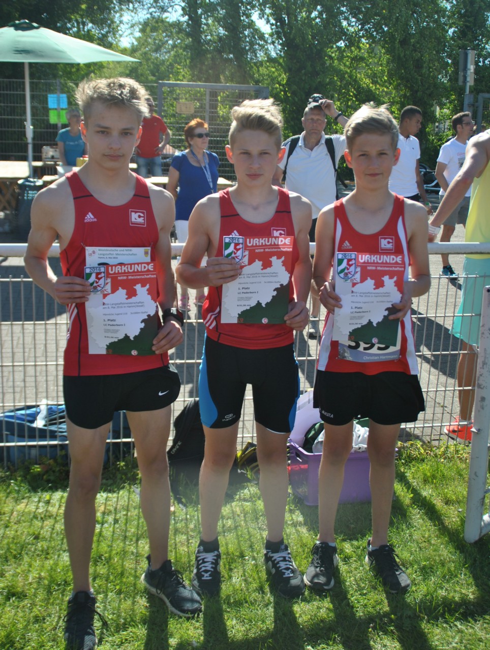 Für den größten Jubel unter dem Paderborner Anhang sorgten wohl Christian Hartmann, Leonhard Scheike und Simon Lohmann. In einem äußerst spannenden Rennverlauf über die 3×1000 Meter der männlichen U16 gewann das Team von Christian Scharf in 8:51,56 Minuten den NRW-Titel. Schlussläufer Simon Lohmann egalisierte bei seinem Abschnitt einen Rückstand von gut 100 Meter auf die Läufer des OSC Waldniel (8:55,63 Minuten) und des SC Eintracht Hamm (8:57,11 Minuten) und sorgte mit einem fulminanten Schlusssprint für den Paderborner Erfolg.