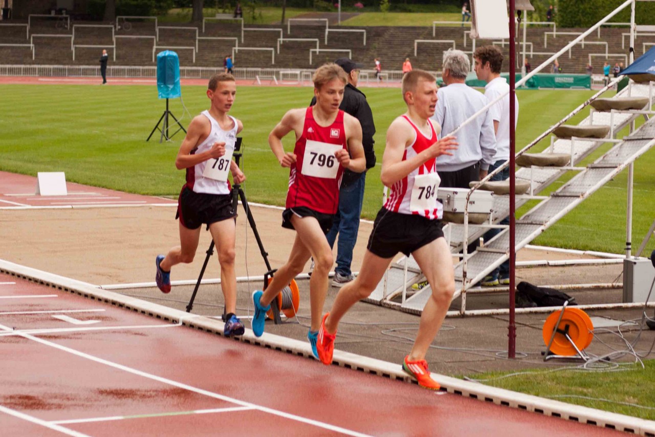 Den Medaillensatz vervollständigte Simon Lohmann durch seinen dritten Platz über 3000 Meter der M15. Früh im Rennen hatte er sich mit einer Fünfergruppe vom übrigen Feld abgesetzt, welche Kurs auf die DM-Norm für Bremen (9:50,00 Minuten) nahm. In der Schlussrunde, als das Tempo erwartungsgemäß noch einmal deutlich angezogen wurde, fehlten Simon nach einem hartnäckigen Infekt noch ein paar Körner, sodass ihm nur noch die Sicherung des dritten Platzes gelang. Mit der Zeit von 9:41,61 Minuten unterbot er allerdings auf Anhieb deutlich die Qualifikationsnorm für die Deutschen U16 Meisterschaften in Bremen.
