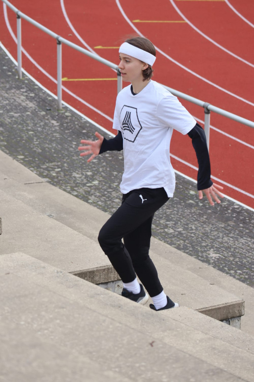 Nun ist es mir nach monatelanger Abstinenz wieder gestattet, das Stadion des Ahorn-Sportparks und dessen Gegebenheiten zu nutzen, um mich körperlich fit zu halten. Zuvor waren es Berge zum Hochsprinten, Mauern zum Raufspringen, Treppen zum Hochlaufen oder die Klimmzugstange