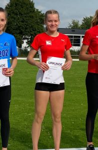 Auch für Gesa Lutze verliefen die Meisterschaften sehr erfolgreich. Die W15-Athletin sprintete über 100 Meter trotz Gegenwind mit 12,83 Sekunden zu einer extrem starken Bestzeit und Platz zwei. Auch im Weitsprung zeigte die Athletin von Michael Gaentzsch mit 5,25 Metern eine starke Leistung, die ihr ebenfalls den Vizemeistertitel beschert.