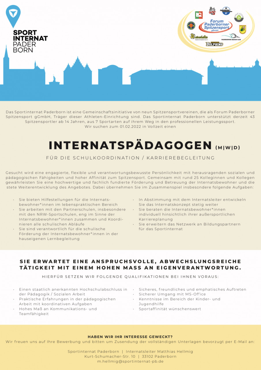 Mehr Infos unter https://www.sportinternat-pb.de/stellenangebot.php