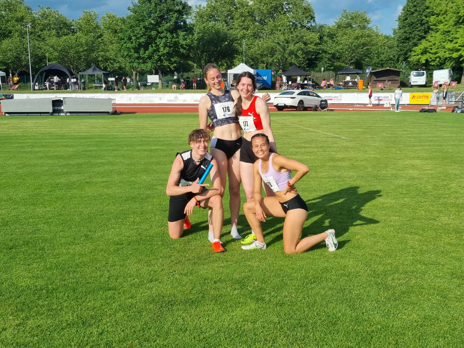 Ebenfalls am Start waren Yasmin und Keshia Kwadwo. Im Vorlauf der 100 Meter der Frauen konnte Yasmin mit 11,48 Sekunden eine neuen Saisonbestzeit aufstellen, im A-Finale war sie 11,50 Sekunden nur unwesentlich langsamer. In 11,60 Sekunden konnte ihre Schwester Keshia außerdem das B-Finale für sich entschieden. Beide untermalten mit ihren Leistungen noch einmal ihre Qualifikationen für die Deutschen Meisterschaften in Berlin. Ebenfalls im B-Finale des hochkarätigen Sprintfelds stand Kathrin Grenda (11,88sec), die ebenfalls im Vorlauf mit 11,83 Sekunden eine neue SB aufstellen konnte und damit die B-Norm für Berlin erfüllte. Über gute Zeiten konnten sich außerdem Anna Semler (12,36sec) und Vanessa Golownitsch (12,61sec) freuen. Und auch Alina „Neo“ Kuß und Lauryn Siebert liefen in 12,24 Sekunden solide 100 Meter.