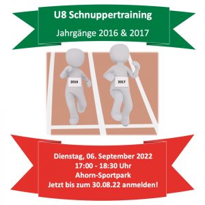 Anmeldezeitraum ab sofort bis zum 30.08.2022 geöffnet. Bitte nur Jahrgänge 2016 & 2017 mit vollständigen Kontaktdaten anmelden.