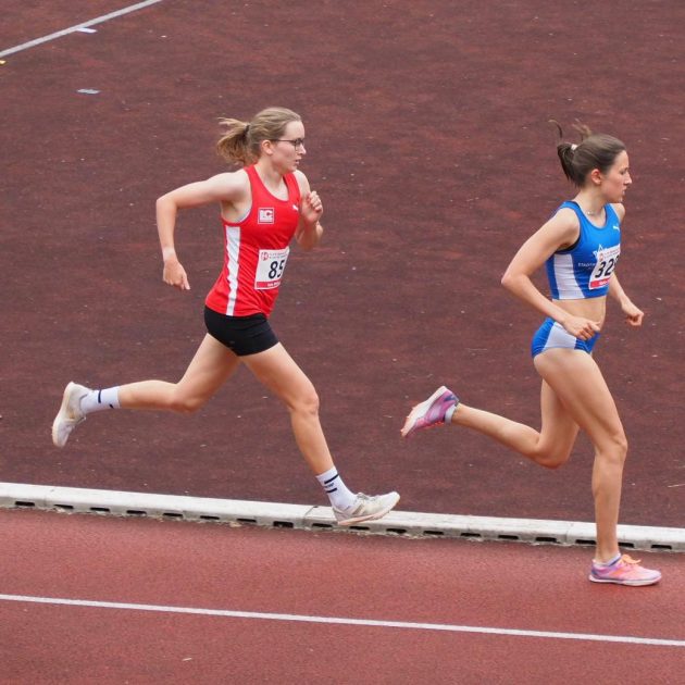 Den Abschluss des Meisterschaftswochenendes machten die Wettkämpfe im Hohenhorst Stadion in Recklinghausen. Hier zeigte Samuel Vorderwülbecke wieder einmal seine starke Form und lief in neuer Bestzeit von 4:07,84 über die 1.500 Meter in der Männerklasse zur neuen Bestzeit und dem Vizetitel. Über die gleiche Strecke gelang Nele (4:40,23min) und Lea Weike (4:47,58min) ein LC-Doppelschlag. In einem taktischen Rennen blieb Nele bis 300 Meter vor dem Ziel immer an Position zwei und konnte sich mit einem langezogen Endspurt klar nach vorne absetzen. Lea, lief in der Verfolgergruppe dahinter und setzte ebenfalls 300 Meter vor dem Ziel zu einem fulminanten Endspurt an. Auf der Zielgeraden konnte sie sogar die bis dahin zweite noch abfangen. „Unser Plan ist heute komplett aufgegangen. Sowohl Nele wie auch Lea haben das taktisch hervorragend gemacht“, erklärt Trainer Michael Krusemark. In Bestzeitform zeigte sich auch wieder einmal Robert Rutz. Der U20-Athlet sprintete über die 400 Meter zur neuen Bestzeit von 49,15 Sekunden und verwies damit Finn Bietenbeck (TV Gladbeck 1912) und Stephan Jordan Bertmann (TV Wattenscheid 01) auf Rang zwei und drei.