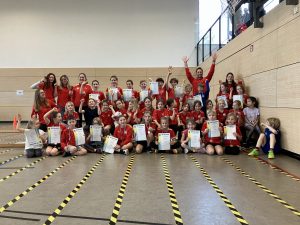 Die Kinder meisterten mit viel Enthusiasmus die unterschiedlichen Disziplinen der Kinderleichtathletik erfolgreich. Die U8 und die U12 starteten vormittags mit Hoch-Weitsprung, Medizinballstoß, einer Hindernisstaffel und dem abschließenden Transportlauf. Unsere U8-Mannschaft sicherte sich gegen die Konkurrenz aus dem Kreis Paderborn erfolgreich den ersten Platz. Die Kinder der U12 konnten sich über den ersten und den sechsten Platz freuen. Nachmittags zogen die U10-Mannschaften nach und platzierten sich auf Rang vier und sechs. Schlussendlich warteten alle gespannt auf die Siegerehrung und freuten sich über die erhaltenen Urkunden und Medaillen.
