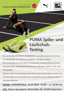 Der LC Paderborn e.V. veranstaltet zusammen mit dem Laufladen Endspurt aus Paderborn und PUMA zum zweiten mal ein Spike- und Laufschuh-Testing.
